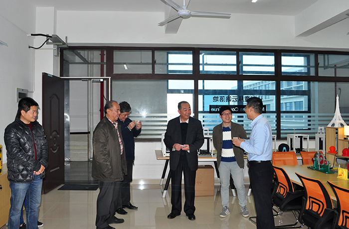 加拿大厦门海外联谊会名誉会长、厦门市陶行知研究会会长陈闽杰,厦门城市职业学院纪委书记易化一行参观实训大楼。