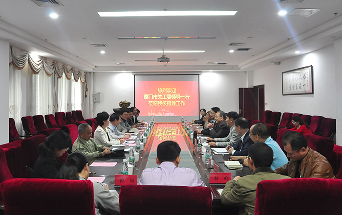 厦门市关工委副主任毛振亚在听取汇报后,充分肯定了我校关工委工作取得的显著成绩,高度赞扬了我校勤工助学工作对学生的思想政治教育作用,并详细询问了我校学生党员的培养、发展情况。