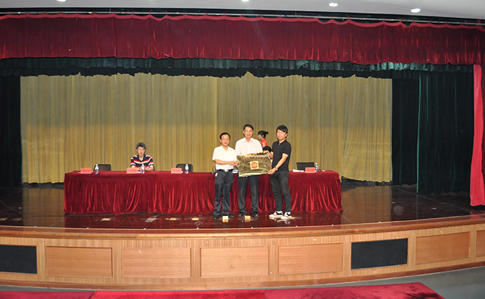 福建省民用无人飞机协会会长李建军向董事长、执行校长鲁加升授牌“福建省无人机教育委员会”, 福建省民用无人飞机协会会长李建军和厦门南洋职业学院董事长、执行校长鲁加升共同向福建省民用无人飞机俱乐部李连活部长委托代表人陈若愚授牌“福建省无人机俱乐部”。