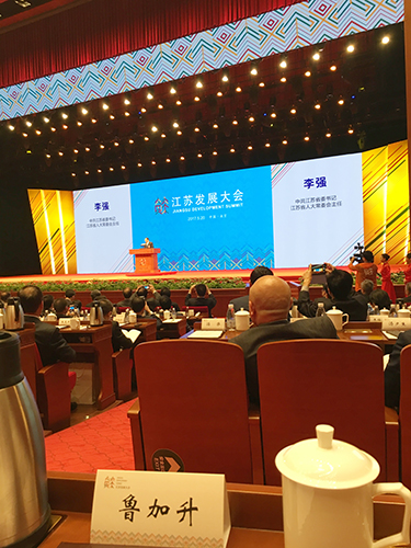 在大会开幕式上,省委书记、省人大常委会主任李强发表了题为《共同谱写江苏未来的锦绣篇章》的主旨演讲。 李强书记说:“江苏是一方不断创造发展奇迹的热土,在这片热土上,拥有着全国最大规模的制造业集群,迸发着蓬勃的创新创业活力,汇聚着国际化的高端资源和人才,遍布着名城名镇和美丽乡村,勤劳智慧的江苏人民正在创造着更加美好的生活。江苏的梦想归根到底是每一个江苏人的梦想拼织而成,我们相信,在这片有风景、有底蕴、有活力的大地上,一定能够创造出新的发展奇迹。”