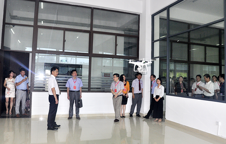 汇报会开始前,评估专家组成员在校领导的陪同下,参观了我校实训大楼。评估专家对我校先进的实训条件、完备的实训设施赞不绝口,当听到鲁加升董事长介绍我校为普通教师免费提供场地进行创业时,当看到工业机器人实验室里的机器人为大家介绍实验室情况时,大家饶有兴致地拿出手机拍下一个个精彩的场景。