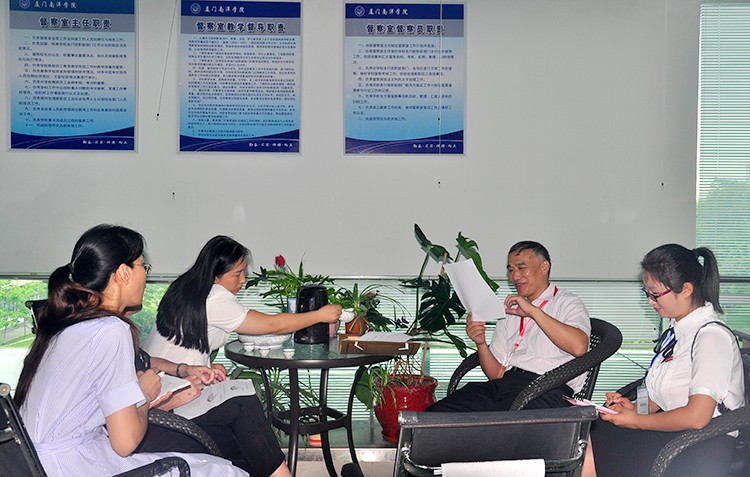 6月21日上午,厦门南洋职业学院第二轮人才培养工作评估汇报会在我校第一会议室举行。以杭州职业技术学院院长贾文胜教授为组长的评估专家组全体成员、福建省教育厅评估中心主任柏定国教授、陈茂续副教授,厦门市教育局副局长任勇等出席汇报会,省教育厅督导专员蔡金萱教授及我校领导王豫生、鲁加升、施水成、孙杰、潘世平、张东宏、何卫华、方悦及各二级学院院长、各职能处室负责人参加了汇报会。汇报会由党委书记施水成主持。