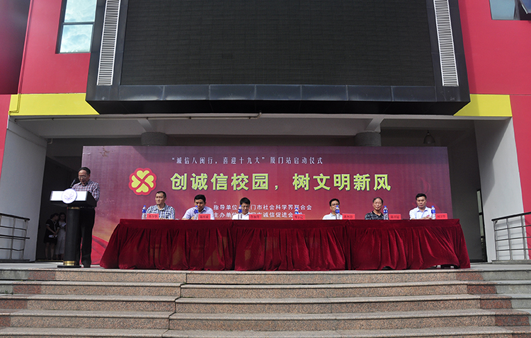 6月21日,“创诚信校园,树文明新风”主题活动启动仪式在我校举行。厦门市社会科学界联合会副主席陈怀群,厦门市人大城建环资委原主任、厦门市诚信促进会会长傅子仪,诚信促进会执行副会长兼秘书长陈少华,翔安区工商联秘书长陈幸福及我校领导鲁加升、施水成、何卫华等出席启动仪式。此项活动由厦门市社会科学界联合会指导,厦门市诚信促进会主办,厦门市诚信促进会与厦门南洋职业学院承办,旨在引导广大青年学生深入践行社会主义核心价值观,营造诚实守信的校园文化氛围。