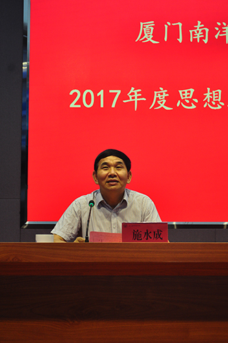 董事长、执行校长鲁加升最后发表讲话。他指出,做好思想政治教育工作,要将更多的“爱”融入到各项具体事务中,要爱祖国、爱学校、爱教职员工、爱学生;做好思想政治教育工作,关键在广大科级以上干部、思想政治理论课教师和辅导员的亲身示范和带动引领。他要求做思想政治教育工作必须与学校的人才培养工作紧密结合起来,既要内化于心,更要外化于形;思想政治研究中心要加强思想政治工作研究,联系实际,切合校情,深化马克思主义理论和其他思想政治理论课的改革,增强学习和教育效果。
