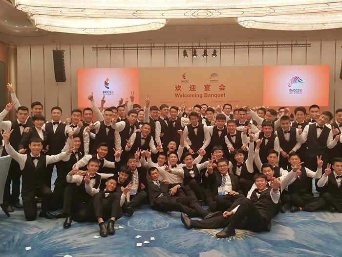 据了解,早在今年4月底,当厦门会议会展中心酒店与我校联系金砖宴会服务专项生工作事宜时,我校即高度重视,精心组织,层层考核,最终从外国语与旅游学院选拔出63名学生作为厦门会晤服务的专项生。5月下旬开始,63名学子到厦门会展酒店进行了18个课时的通识学习、礼仪培训、走托训练、应急处置、五国文化等专业培训。7月8日,进入厦门会展中心酒店进行半封闭式的高强培训,按照杭州G20峰会与“一带一路”的服务标准,进行礼仪形体、基础摆台、餐饮和会议服务共计4大类42项360个点技能培训,将每一项服务对标“北辰标准”。经过艰苦的培训和严格的考核,最终我校63名学生全部分配到国宴核心区域,其中国宴厅17人、茶歇32人、酒水间6人、中西餐厅8人,是所有参与院校中学生进入国宴核心区域最多的一个院校。在9月2日-5日的金砖会晤期间,63名南洋学子始终以饱满的热情服务好每一天,用细致的服务和热情的微笑,成为厦门金砖会晤最美的名片!
