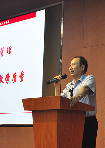 董事长、执行校长鲁加升以《做一个合格的大学老师》为主题对全体教师提出了立德树人、甘为人梯、不断自省等职业道德要求。他认为学校的一切工作是为了培养人才,而教师是人才培养的关键所在,做一名合格的老师不仅要关爱学生、用心教学,而且应不断自省,把做一名合格的老师当作一项大课题来研究。全体教师应牢记学校“以人为本、全面育人、特色办学”的办学理念,扪心自问、虚心受教,向着升本目标前进、前进、再前进。