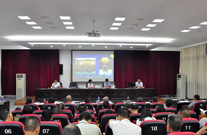 施书记先介绍了我校学校坚持“以人为本,特色办学,全面育人”的办学理念以及“把每一个学生都当作自己的孩子”的办学口号,坚持高等职业教育定位即始终坚持办一所合格的有特色的职业大学;坚持教育理念与教育实践创新;坚持以质量与特色取胜;坚持以就业为导向办学;坚持党对学校思想政治工作的领导五大治校方略等学校概况。接着介绍了我校校党委如何紧紧围绕学校中心工作,切实履行民办高校党组织各项职责,坚持立德树人,传播马克思主义科学理论,培育和弘扬社会主义核心价值观,加强学校意识形态阵地建设和管理,深化改革创新,积极探索党建和思想政治工作的新途径——创设厦门南洋学院学工部(处)微信平台,通过微信平台新颖的思想教育形式和喜闻乐见“接地气”的内容,让思想政治教育无处不在,实现与学生零距离沟通,“面对面”对话,并利用微信平台,打造无纸化、微信化会议;设立学生公寓党工委,让党建思政工作延伸到学生公寓;开展“三爱”教育,让红色文化进校园;成立党委教师工作部等党建工作创新做法。然后介绍了我校成功承办了第三届全国民办高校党建工作论坛的工作经验以及学校不断加强党建和思想政治工作,充分发挥党委的政治核心作用,紧紧围绕培养什么样的人、如何培养人、为谁培养人这个根本问题,把正确的政治方向、价值导向贯穿到办学治校、人才培养的各方面和全过程,坚定理想信念教育,培育和弘扬南洋精神,落实立德树人。施书记表示今后学校将继续认真组织全体教职工学习贯彻全国、全省高校思政工作会议精神,继续深入学习贯彻习近平总书记在全国高校思想政治工作会议上的重要讲话,把握思想内涵,领会核心要义,进一步把思想和行动统一到讲话精神上来,凝心聚力,积极发挥党组织的作用,继续加强党建与思想政治工作,深化改革创新,在学生思想政治素质、教师队伍建设、哲学社会科学学科理论基础等方面不断提升能力与水平、不断改进我们的工作,为把厦门南洋职业学院办成中国特色社会主义的一流民办大学而努力奋斗。