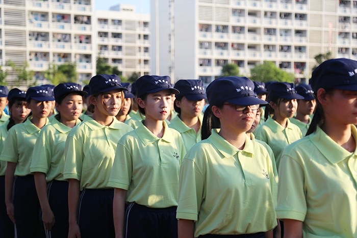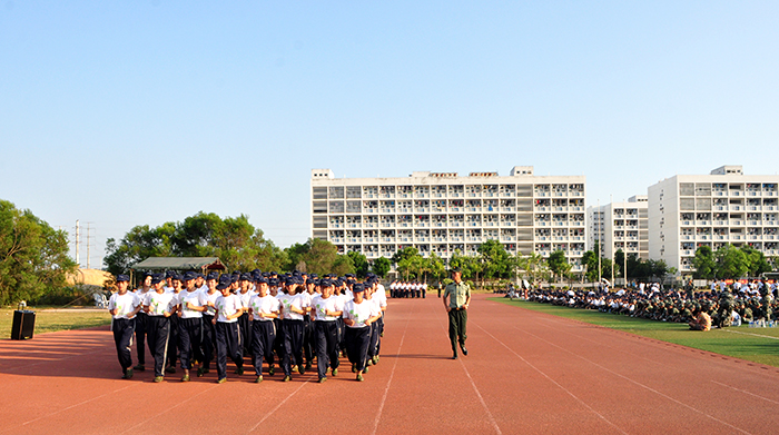大会在2017级学生威武整齐的会操中拉开帷幕,所有参训学生以排为单位依次向校领导展示军训成果。