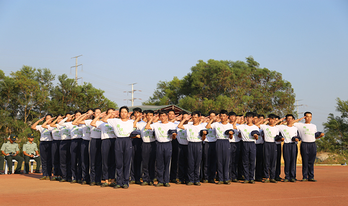 9月27日下午,我校在田径场隆重举行2017级学生军训会操暨入学教育。校领导施水成、何卫华、张东宏及承担我校学生军训任务的海防某连指导员出席大会。学工处处长李振杰主持大会。