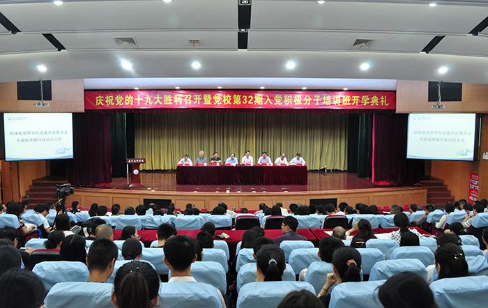 10月21日上午,我校在活动中心礼堂召开迎接省高等学校设置评议委员会专家组考察评估动员大会,校领导鲁加升、施水成、康乃美、潘世平、张东宏、何卫华、钟石根出席会议,湖南郴州职业技术学院院长支校衡教授应邀出席会议,全校教职员工参加会议,党委书记施水成主持会议。