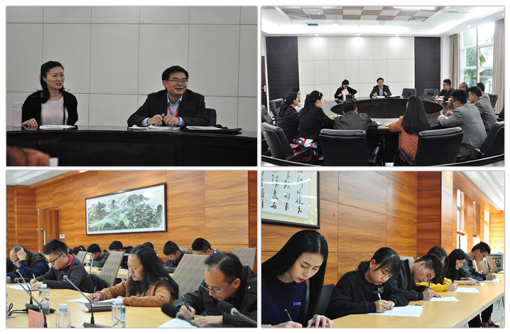 督导员蔡金萱,校领导潘世平、张东宏、何卫华、钟石根出席汇报会;学校党委委员、各总支书记、各部门负责人及文明办全体人员参加汇报会。