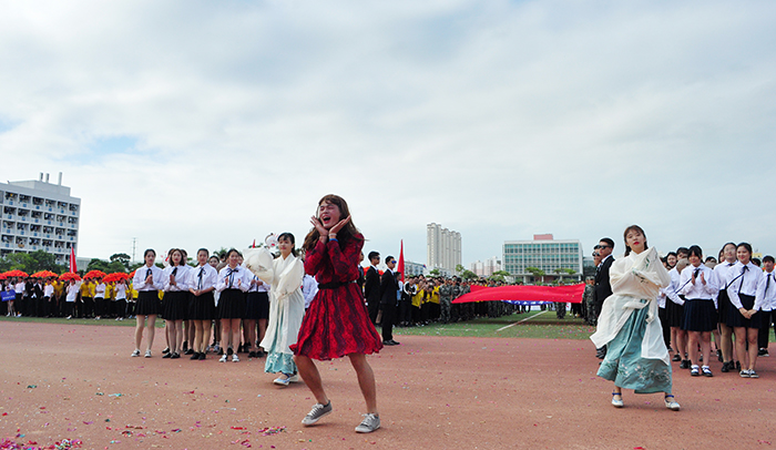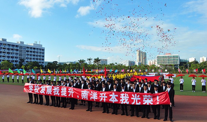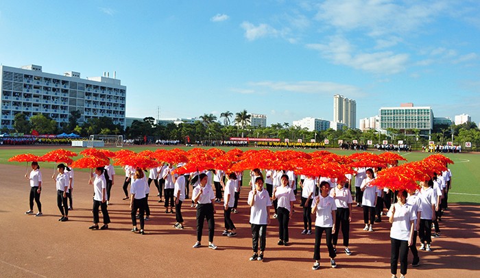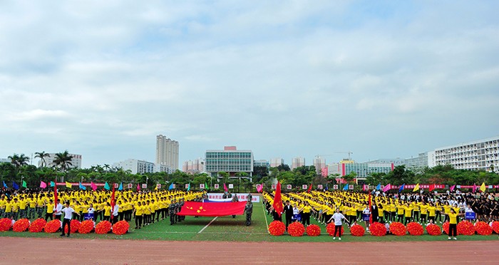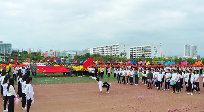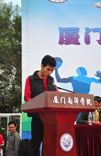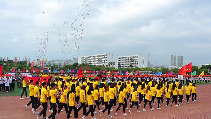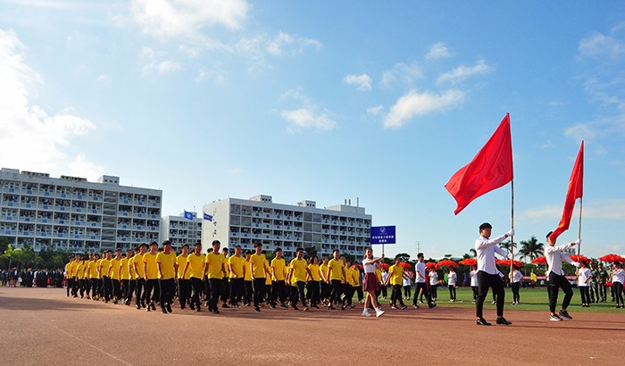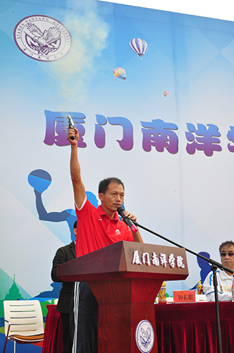 入场式后,校长王豫生宣布“厦门南洋职业学院第12届运动会开幕”,运动场上奏响了雄壮的国歌。