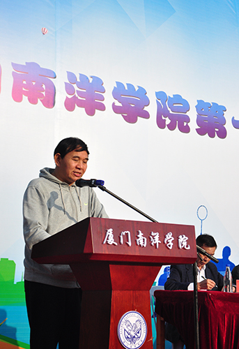 党委书记、副校长施水成在讲话中指出,体育赛事的竞争,不仅仅是体能和技能的竞争,更是毅力和意志的竞争。他希望老师们、同学们能够把校运会所体现的永不服输、一往无前的精神发扬光大,把赛场上表现出来的坚韧不拔的意志、顽强拼搏的作风、高歌猛进的气概和团结互助的精神发扬光大,并融入今后的学习和工作中,以昂扬的斗志、崭新的姿态和饱满的激情迎接即将到来的升本评估,谱写新时代南洋学院发展的新篇章。