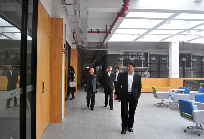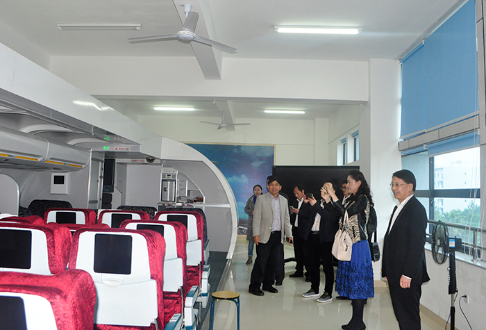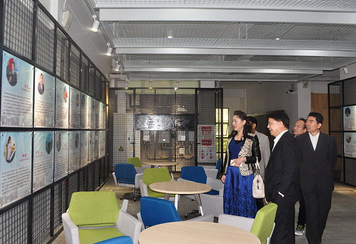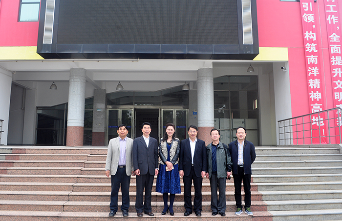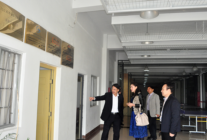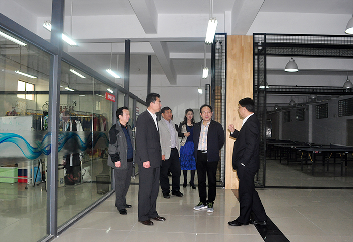 鲁董事长和施书记陪同丁川副主席、王允强书记参观了我校实训大楼、学生活动中心,并在时代广场合影留念。