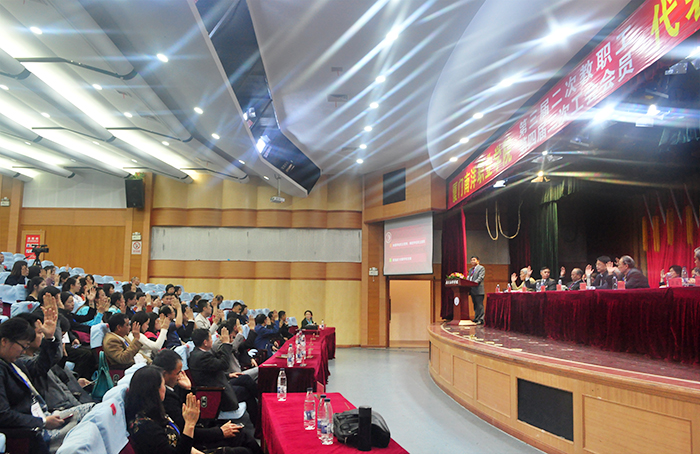 3月21日下午,厦门南洋学院三届二次教代会暨四届二次工代会在活动中心礼堂胜利闭幕。校领导王豫生、鲁加升、施水成、潘世平、张东宏、何卫华、钟石根出席会议,董事长、执行校长鲁加升发表重要讲话,党委书记施水成主持会议,来自全校各单位的正式代表、特邀代表和列席代表137人参加会议。会议表决通过了学校工作报告、工会工作报告、《厦门南洋职业学院关于二级学院教育质量评估办法》情况说明的报告。