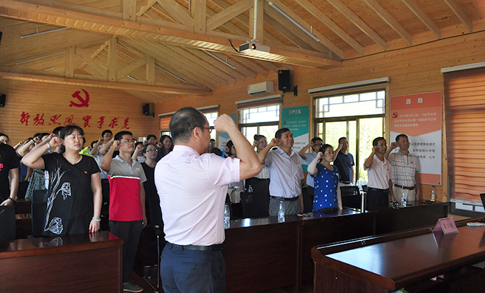 在白交祠村高山党校教室,党委委员、党政办主任李振杰带领党员们庄严重温入党誓词。宣誓后,党委书记施水成发表讲话,告诫党员们要始终不忘入党初心,牢记党员使命;要领悟总书记“四下基层”“四在一线”的工作方法,在实际工作中加以应用;要理解学校转型升级期的改革举措,分担学校遇到的困难,努力为学校的发展添砖加瓦、创先争优。