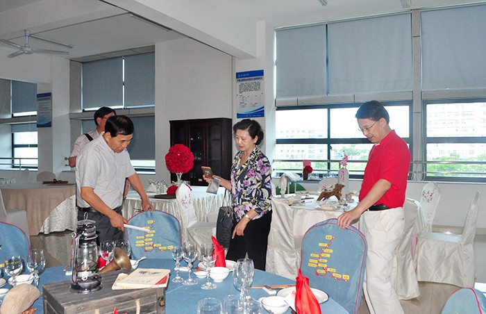 詹心丽副校长先后参观了橱柜学院、外国语与旅游学院、建工学院、艺术学院等。她一边兴致勃勃地观看学生制作的建筑模型和时装及中西餐摆台,一边详细询问学生的就业情况,并感叹道,南洋的毕业生抢手名不虚传啊!她表示,所谓培养学生的工匠精神,其实就是培养学生的动手能力并且引导学生把事情认真做好,南洋在这方面值得学习。