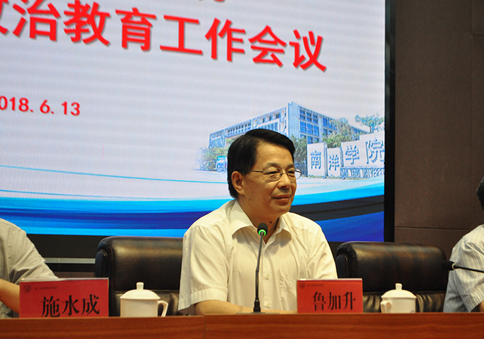 6月13日下午,厦门南洋学院在仙岳报告厅召开2018年度思想政治教育工作会议。校长王豫生作主题报告,董事长、执行校长鲁加升讲话,党委书记施水成主持会议并讲话。常务副校长康乃美、副校长张东宏及党委委员出席会议,各党总支书记、支部书记、团委委员、副科级及以上干部、辅导员、班主任、思政课教师参加会议。