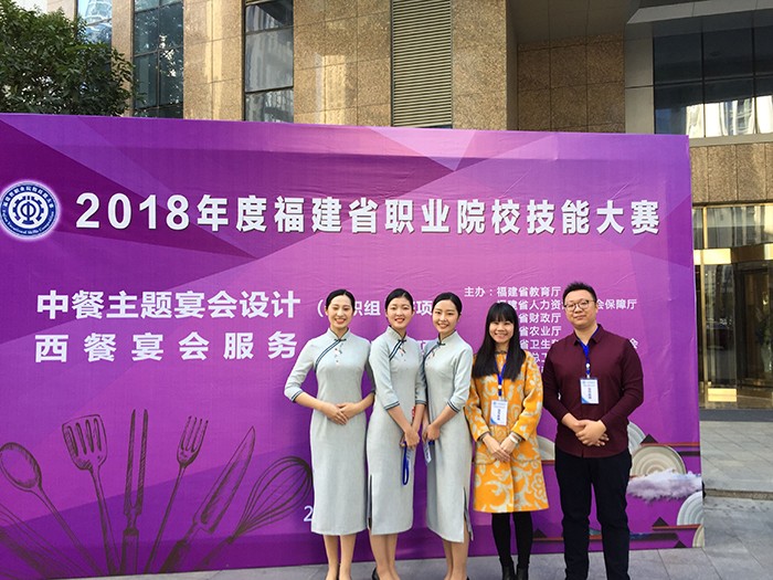 在培养学生方面,本专业以许爱云老师的“六化”训练模式为基础,根据训练内容课程化、指导教师团队化、训练选手梯队化、训练方式多样化、训练管理规范化和训练资料信心化,培养学生的综合素质,在历年的技能竞赛中,都获得了骄人的成绩。尤其是在2018年福建省职业院校技能竞赛中,外国语与旅游学院学生参加了7个赛项的比赛,取得了优异成绩。