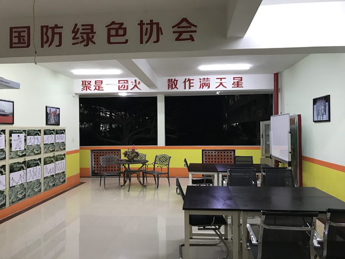 我校国防绿色协会(以下简称国绿),于2016年11月2日成立,协会会员50余名。创办这个协会的初心是为了把这个协会的学生打造成政治思想上进,国防观念增强,命令纪律铁定,志愿吃苦耐劳,作风过硬扎实,学习优良的学生领袖。作为国绿协会的指导老师,我衷心希望国绿的每个同学都能成为有理想信仰、有责任担当、有国防技能、有专业知识,具有高素质和全面发展的优秀大学生,同时把国绿协会打造成有鲜明特色的学生社团,助力学校的管理与发展。