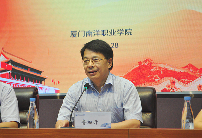 董事长、执行校长鲁加升在讲话中提醒全体党员面对新形势、新任务,应该有更高的标准和更高的要求。作为一名有着36年党龄的老党员,他带领大家背诵入党誓词,并对全体党员提出三点希望:一是不忘初心,二是当好表率,三是对自己有更高的标准。