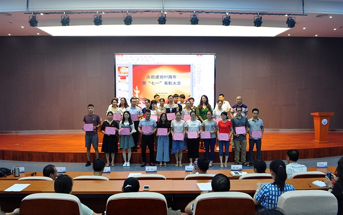 南洋网讯 今日(6月28日)下午,厦门南洋学院在仙岳报告厅举行庆祝建党97周年暨“七一”表彰大会,董事长、执行校长鲁加升,党委书记施水成,副校长何卫华,以及党委委员出席表彰大会,党委委员、副校长何卫华主持表彰大会,全校师生党员及科级以上干部参加表彰大会。