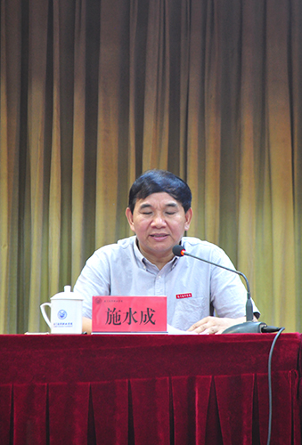 施水成书记从9个方面回顾总结了本学期工作:专家回访工作顺利完满,教学工作质量稳步提升,科研工作成果有新突破,学生学习成效持续改善,机构队伍建设稳中有变,基础信息建设再上台阶,社会服务合作交流增进,党建思政工作更加出色,安全保障服务提质增效。施水成书记还对暑期工作任务进行了部署,要求行政人员作好值班,专任教师做好教学计划和准备,全校教职员工做好招生工作。
