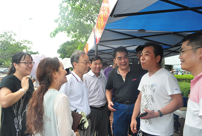 在经济管理学院,王豫生校长看到肖亮老师也在接待新生,关切地说老教师也出马了,肖亮老师回答说这是做老师的本份。