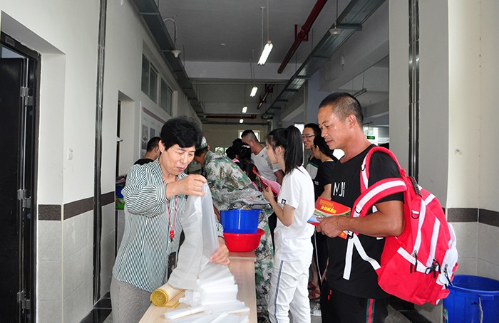 在机电工程学院,当看到正在办手续的新生是由家长陪同来的,王豫生校长和蔼地问这名新生有没有能力独自来报到,一旁的家长赶紧上前说,孩子自己来没问题的,关键是我们做家长的也想来看看学校啊!