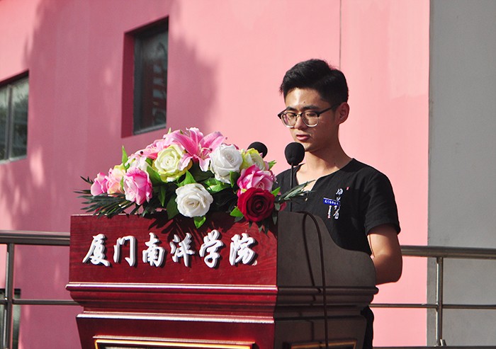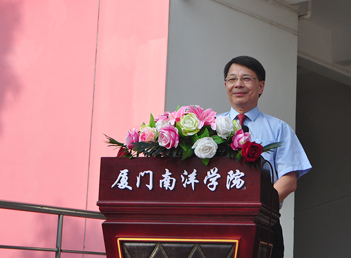 校长王豫生在讲话中指出,南洋学院是广大新生大学学习、独立生活的第一站,是挥洒青春、绽放精彩的大舞台,更是筑魂造梦、强身健体的新天地。他希望2018级全体新生要增长知识本领、坚定理想信念、增进同学情谊、投身学校建设,努力书写最美的青春奋斗诗篇。