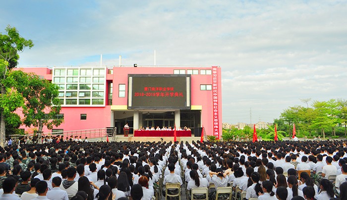 南洋社讯 今日(9月10日)下午16:00,厦门南洋学院2018级新生开学典礼在南洋时代广场隆重举行。校领导鲁加升、王豫生、张东宏、何卫华、钟石根及嘉宾范骏义、黄润理出席典礼,各二级学院和职能部门负责人、教师代表、2018级全体新生参加典礼。校长王豫生发表讲话,董事长、执行校长鲁加升总结讲话,党委书记施水成主持典礼,副校长何卫华宣读表彰决定。