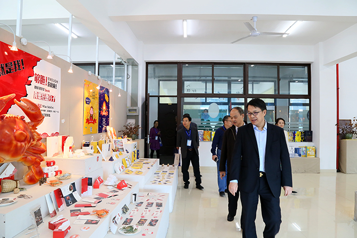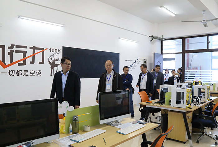 在科研实训大楼,鲁加升董事长先后向客人介绍了机电工程学院、建筑工程学院、艺术设计学院、信息工程学院、外国语与旅游学院、人文社科学院的部分实训室。刘国生副主席边走边看边问,关于专业建设、关于招生问题、关于自主创业、关于教室革命……闽粤两省民办教育专家结合学校发展畅谈民办教育政策,感慨好政策带来的大发展。