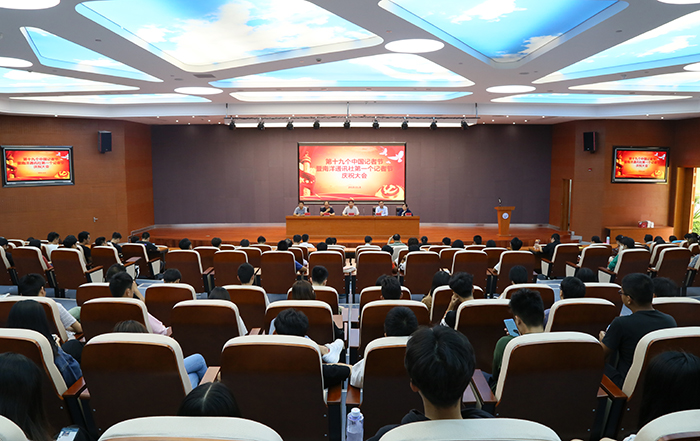 南洋社讯 昨日(11月8日)下午,厦门南洋学院在仙岳报告厅举行第十九个中国记者节暨南洋通讯社第一个记者节庆祝大会。党委书记施水成,党委委员、副校长何卫华,党委委员、党政办主任李振杰,党委委员、督察室主任沈苑,党委委员王晨出席会议;何卫华副校长主持会议;南洋通讯社全体成员,各党总支书记、宣传委员,各党支部宣传委员,各团支部宣传委员,校团委宣传干事近200人参加会议。
