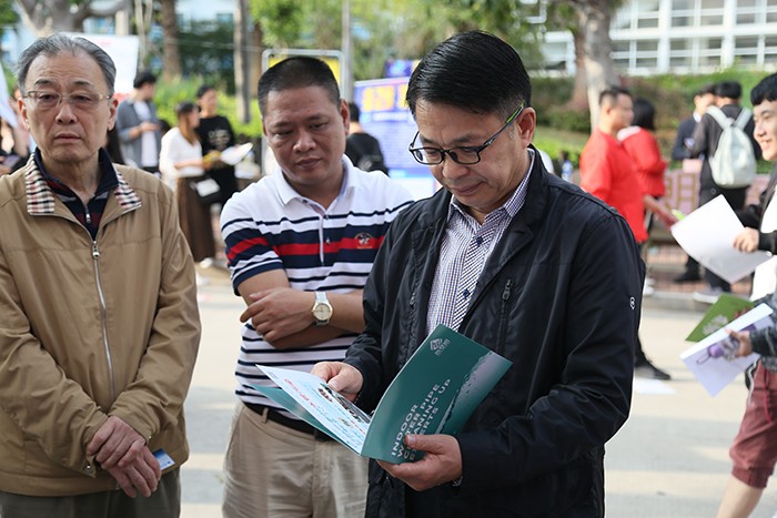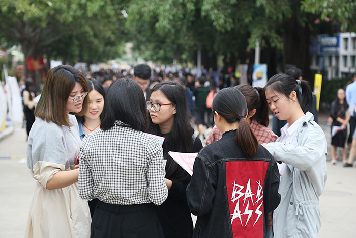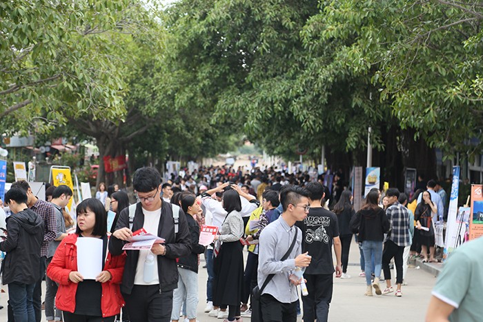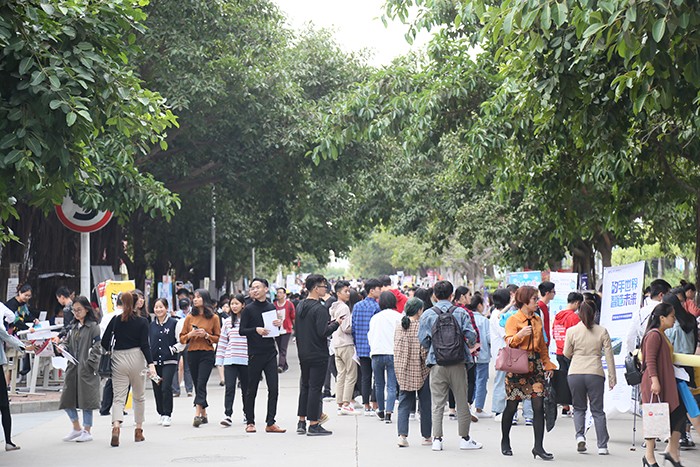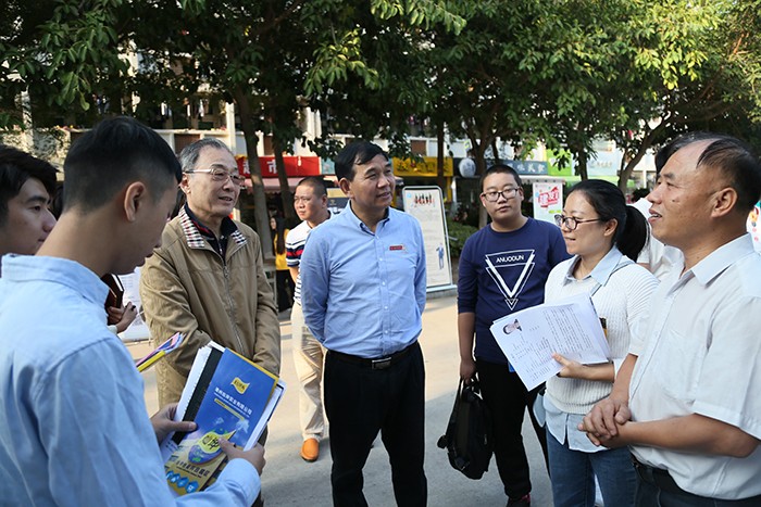 南洋社讯 昨日(11月14日)下午,2019届毕业生校园招聘会在南洋学院时代广场举行,300多家用人单位携上千个岗位前来选聘英才。校长王豫生,董事长、执行校长鲁加升,党委书记施水成来到招聘会现场,与部分招聘单位负责人、学生进行深入交流。