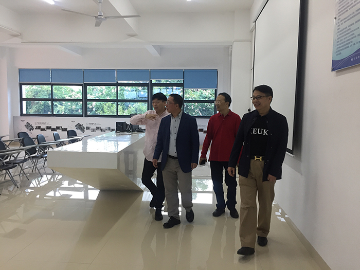 鲁加升董事长等陪同客人先后参观了南洋学院科研实训大楼、学生公寓、学生创业活动中心和图书馆。在科研实训大楼,鲁加升董事长向王建吉院长一行介绍南洋学院的办学理念及实践成效。王建吉院长对南洋学院实训室建设对接产业的做法表示赞赏,认为中国的职业教育就应该如此。他表示,这些专业实训室建设颇有特色,要向其他职业院校大力推广。