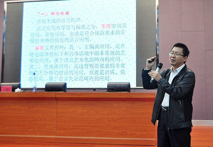 孟建安教授在讲座中指出,语言应用有零度与偏离之分,零度即规范应用、常规应用,而偏离分两种,正偏离应用是在特定语体规制下和具体语境中的非常规的艺术化应用,负偏离应用是违背规范要求的非常规的不合格的错误应用,也就是语病、病态应用。他阐述了语病产生的现实原因和心理动因,从不同角度分析语病类型,并提出了语病评改的七大原则:要保持愿意,要多就少改,要答案恰当,要依规合体,要合情合理,要解释得通,要认可接受。