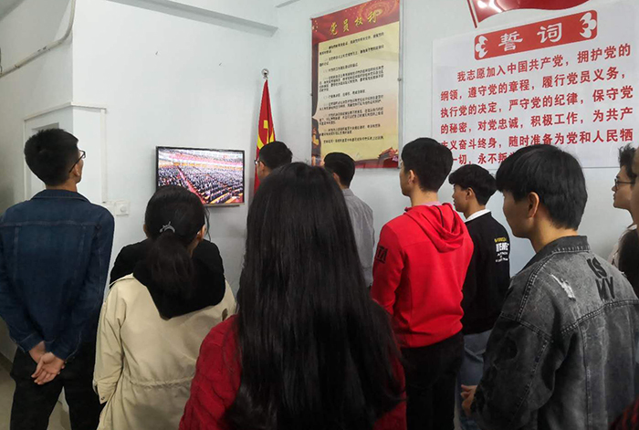 学校校领导、党委委员、没有课的师生等在各支部党员活动室、办公室、会议室等场所,通过网络电视、电脑等,全程观看庆祝大会。全校师生态度认真,积极思考,认真聆听习近平总书记在大会上的重要讲话,了解改革开放的历史进程与改革开放取得的巨大成就,学习于敏、于漪等100名“改革先锋”们的先进事迹,感受改革开放四十年来祖国在教育、出行、审美、娱乐、消费等方面翻天覆地的变化。