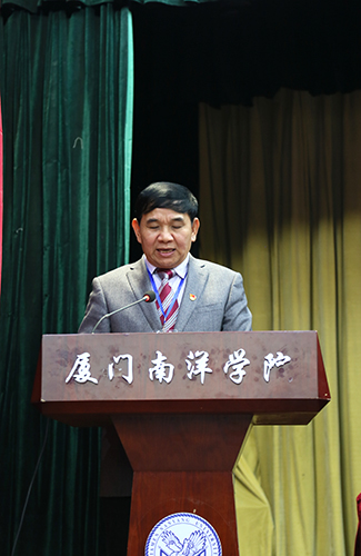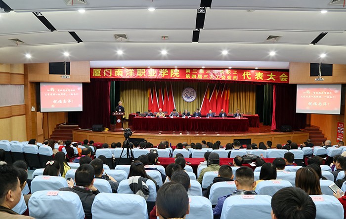南洋社讯 昨日(1月2日)下午,厦门南洋学院三届三次教代会暨四届三次工代会在活动中心礼堂隆重开幕。校领导王豫生、鲁加升、施水成、康乃美、潘世平、张东宏、何卫华、钟石根出席会议,校长王豫生作工作报告,校党委书记施水成致开幕词,常务副校长康乃美主持会议,来自全校各单位的正式代表和列席代表135人参加会议。会议听取并审议了学校工作报告、工会工作报告、《厦门南洋职业学院关于推进产教融合校企合作若干意见》情况说明的报告、提案征集工作报告、工会经费审查报告,并进行了分组讨论。