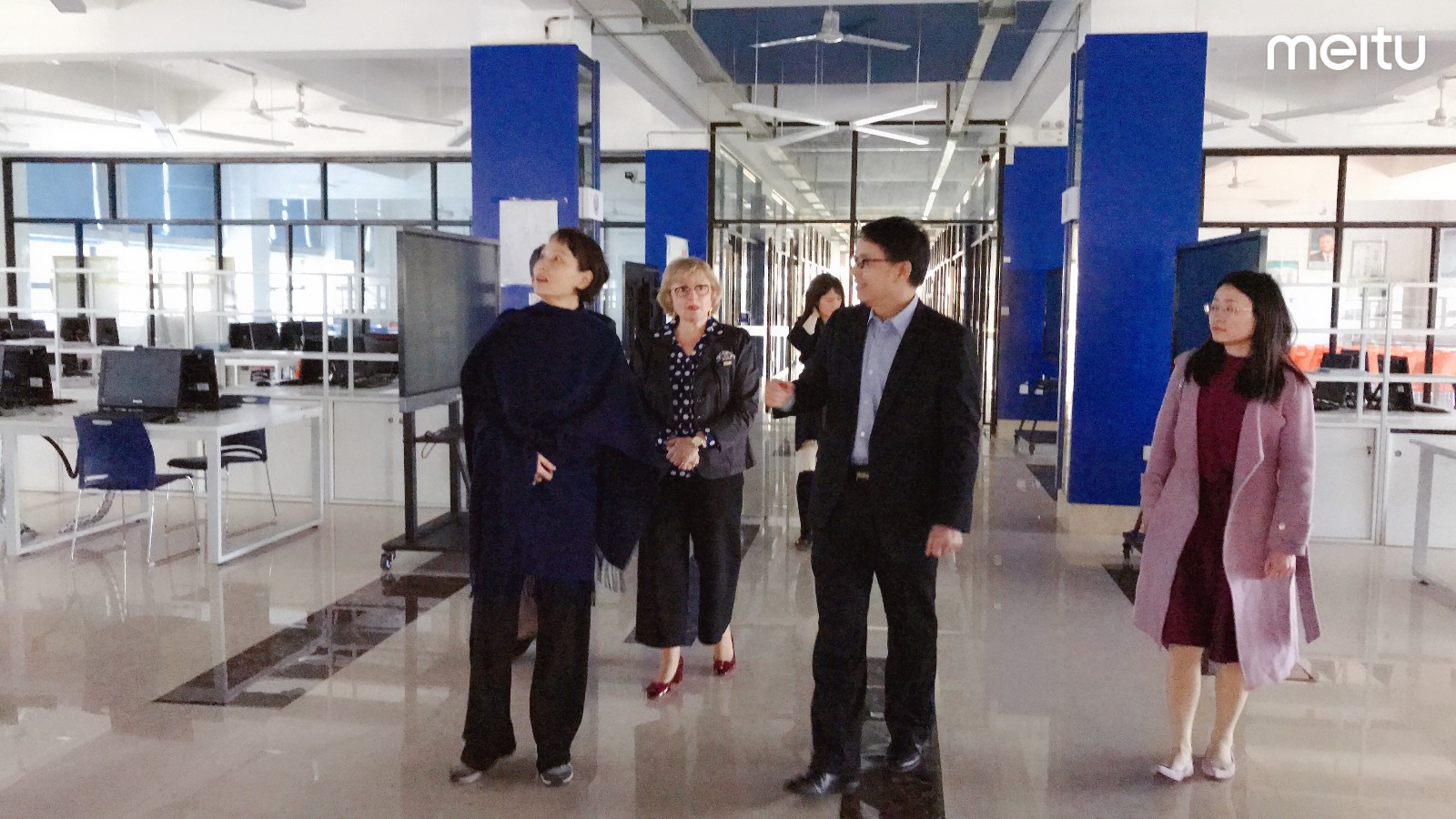 Yanina Kudlik女士及汤蓓华教授一行先后参观了科研实训大楼、学生创业活动中心、图书馆,游览了整个校园,并在图书馆一楼接待室举行会谈。