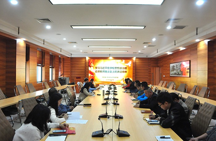 施水成书记在传达了习近平在学校思想政治理论课教师座谈会上的讲话精神后指出,习总书记在学校思想政治理论课教师座谈会上的重要讲话,立意高远、思想深邃,不仅体现了党中央对思想政治理论课的高度重视,还是对全体思想政治理论课教师的亲切关怀、殷切期望和科学指导,为教师不断提升自身素质、在新时代切实讲好思想政治理论课指明了方向和路径,为我们深化思想政治理论课教学改革提供了理论指导和根本遵循,为我们更好地贯彻党的教育方针,落实立德树人根本任务,抓好思想政治理论课的主渠道和主阵地,培养担当中华民族伟大复兴大任的时代新人,培养社会主义合格建设者和可靠接班人指明了方向。