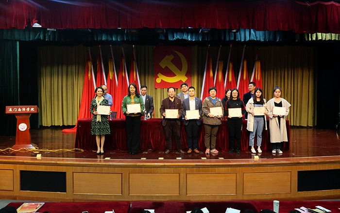 南洋社讯 昨日(3月27日)下午,厦门南洋学院党委在活动中心礼堂举行第35期党校入党积极分子培训班开学典礼暨全校党员大会。党委书记、党校校长施水成出席会议并为全体学员讲授党校开班第一课。党委委员何卫华、李振杰、沈苑、王晨出席会议;何卫华主持会议;全校师生党员、党校第35期入党积极分子、马克思主义读书社成员、习近平新思想读书社成员参加会议。