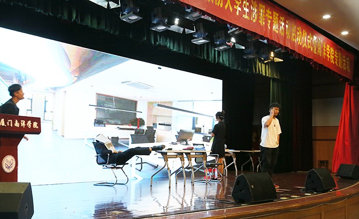 厦门南洋学院和厦门演艺学院学生带来的情景剧《暑期工防骗指南》《校园“贷”价》,分别以“暑假工陷阱”和“校园贷”为主题,“再现”了真实大学生窃取淘宝买家个人信息并贩卖的案件和福建省首起校园贷涉恶案件。翔安区检察院检察官再结合剧情,针对非法校园贷和“反套路”防诈骗进行现场释法,让同学们更直观了解“不义财”和“校园贷”的本质和危害,并由工商银行理财经理对非法校园贷背后的“利滚利”进行剖析。