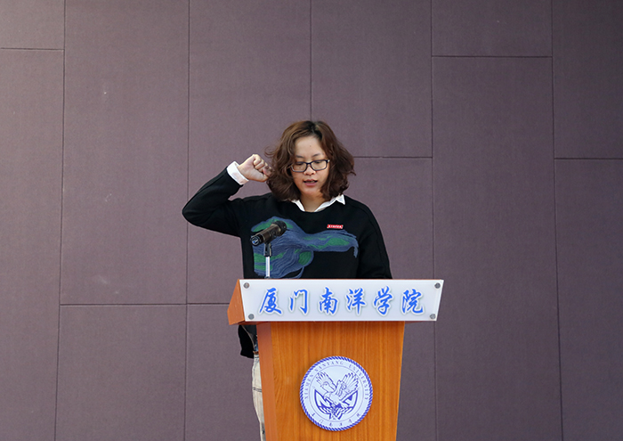 在裁判员代表和参赛选手代表宣誓后,张东宏副校长宣布“厦门南洋学院第七届职业技能竞赛”正式开幕。