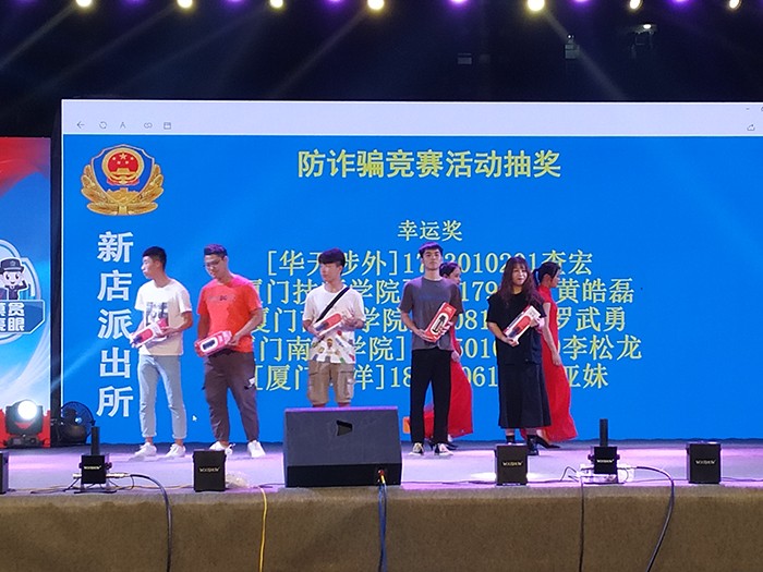 晚会由翔安文教园5所高校和2所职校的师生自编自演防诈骗主题文艺节目,其间穿插防诈骗竞赛抽奖活动。竞赛活动由文教园区高校万名以上学生采取关注“厦门新店平安在线”微信公众号方式参赛,从前600名参赛者中抽取幸运观众现场颁奖,整个晚会高潮迭起,精彩纷呈,好评如潮。