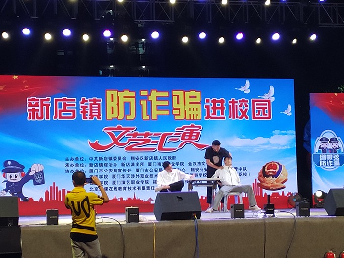 南洋社讯 为有效践行厦门市公安局打通防诈骗“最后一公里”,有效提升广大师生防骗意识,捂紧师生钱袋子。5月23日晚,由中共新店镇委员会、翔安区新店镇人民政府主办,新店镇综治办、新店派出所、厦门南洋职业学院承办的新店镇防诈骗进校园文艺汇演在我校田径运动场举办。