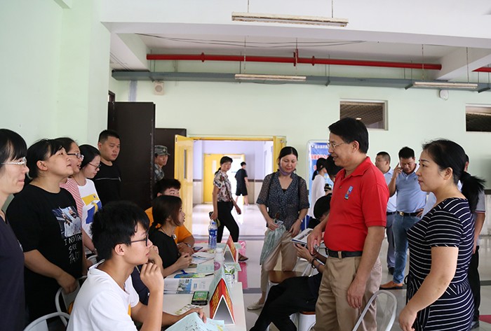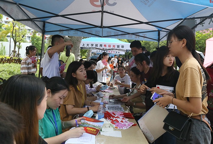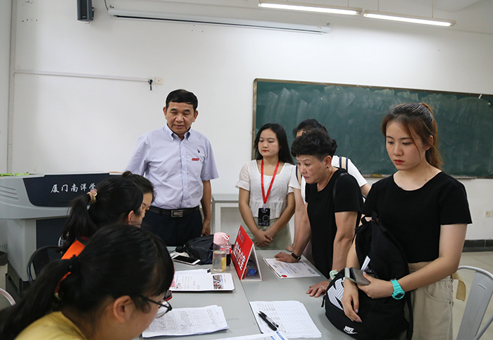 南洋社讯 8月30日至9月1日, 厦门南洋学院2019级新生陆陆续续报到。董事长、执行校长鲁加升,党委书记施水成,副校长何卫华,校长助理兼教务处处长钟石根及相关部门负责人等来到新生报到处看望前来报到的2019级新生。