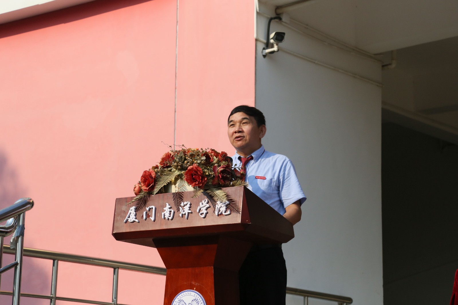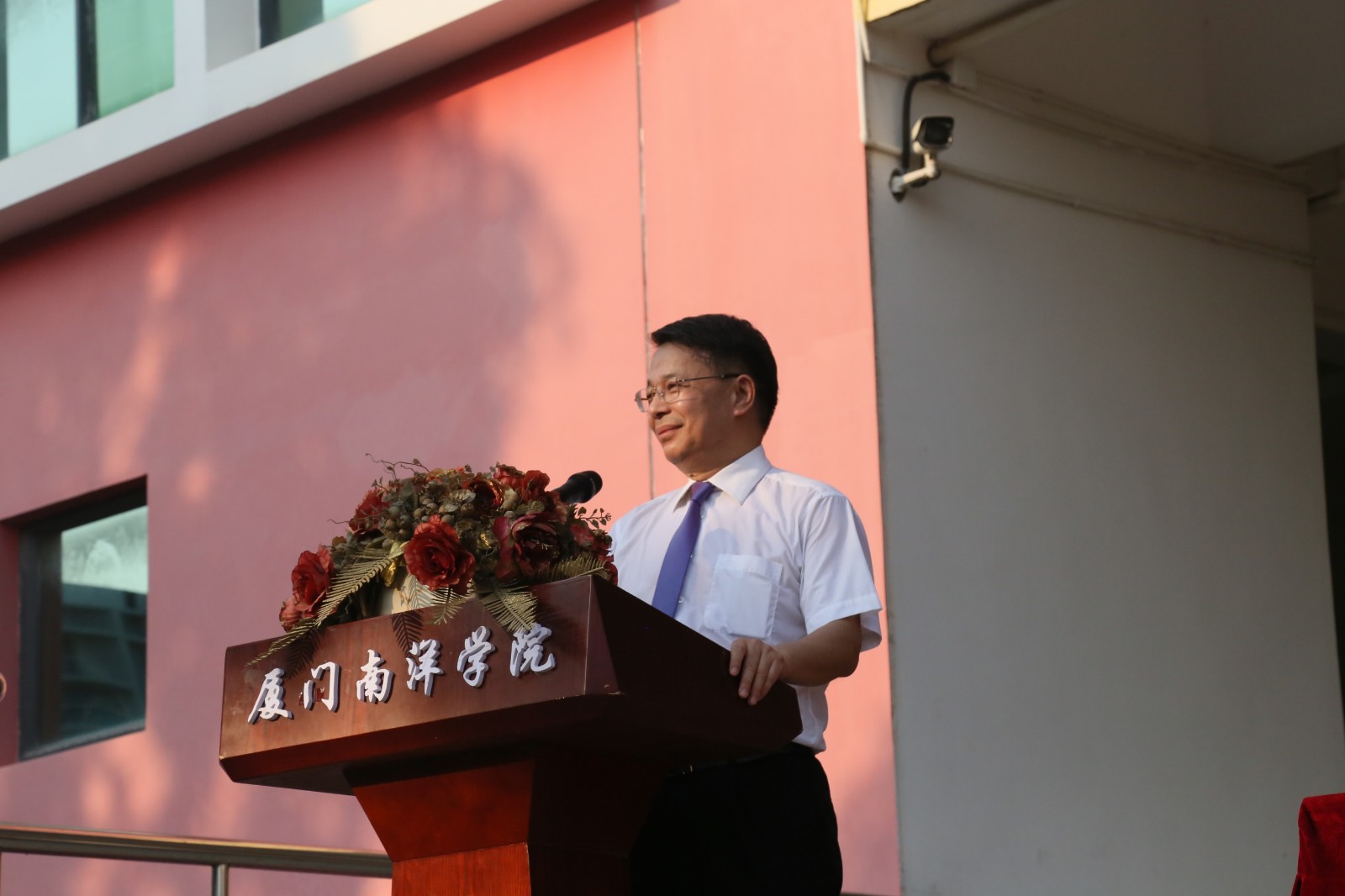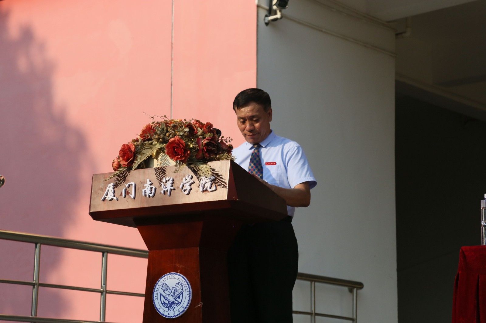 王豫生校长在致辞中希望2019级新生要珍惜大学时光、用好大学时光,同时提出以下三点要求。一是爱国当如家。在祖国即将迎来70华诞这个庄严时刻,要为祖国战胜一切艰难困苦、建设取得丰功伟绩引以为荣、引以为豪、引以为傲;要更加热爱伟大祖国、伟大人民、诚实劳动,增进爱国、爱党、爱校情怀;要更加自觉努力奋斗,发扬斗争精神,增强斗争本领。二是修身当如玉。要坚定理想信念,增强分辨是非的能力;要增强政治、大局、核心和看齐等“四个意识”,坚定中国特色社会主义道路、理论、制度和文化等“四个自信”;要善于发出“好声音”,勇于传递“正能量”。他勉励同学们:“在校期间要积极参加勤工助学,参加社会锻炼,增强自立精神、劳动意识和服务情怀;要投身“三创”教育实践活动,广泛参加社团组织,努力增长见识才干,做敢为人先、积极有为的南洋人。” 三是惜时当如金。要深化同学情谊,加深了解、学会适应、相互尊重;要参与学校建设,深入了解南洋的艰辛创业史与光荣发展史,全面熟悉独特的南洋精神与南洋文化,以实际行动为学校建设发展增光添彩。