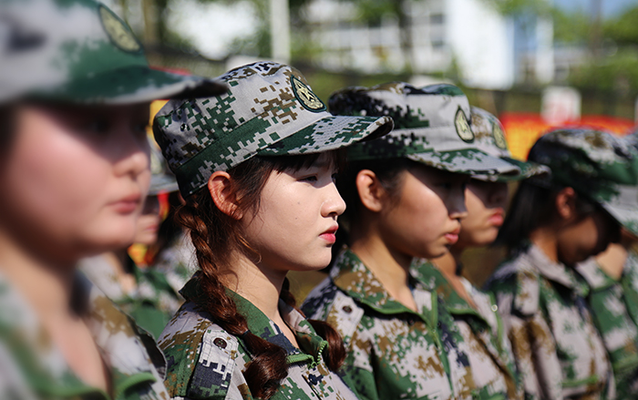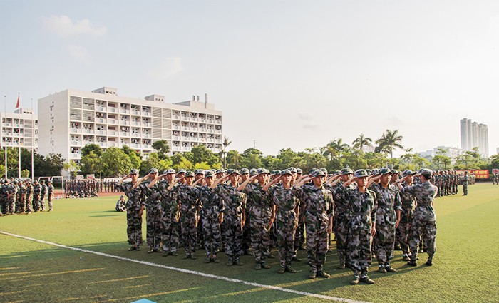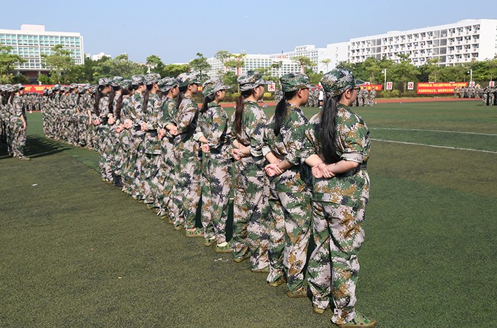 今日(9月10日),热火朝天的南洋大练兵场上,2019级新生们组成的迷彩绿色海洋,成为校园里一道别样的风景线。