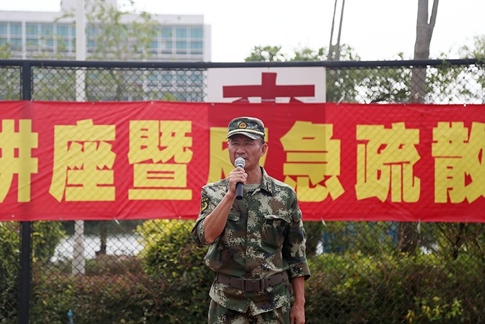 安全稳定工作领导小组副组长、演练总指挥部副总指挥、副校长何卫华对演练活动进行总结点评。他指出,参演学生服从指挥,行动迅速,撤离有序,说明同学们对此次消防演习的重视,达到了预期目标和要求,但在疏散过程中还是有小部分同学态度不够端正,集合速度较慢。他要求2019级新生加强对安全知识的学习与运用,时刻保持防灾意识,高度重视消防安全。