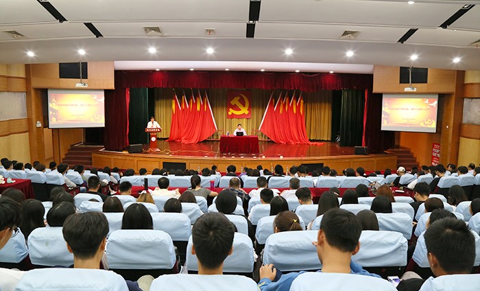 大会在庄严的国歌声中拉开序幕。施水成书记为党校学员和全体师生党员作一堂题为“争创省级文明校园,提升立德树人水平”的主题教育党课。他指出,开展“不忘初心、牢记使命”主题教育,是党的十九大作出的战略部署,是用新时代中国特色社会主义思想武装全党的迫切需要,是推进新时代党的建设的迫切需要,是保持党同人民群众血肉联系的迫切需要,是实现党的十九大确定的目标任务的迫切需要。他结合高校育人实际,深刻阐述了作为新时代共产党人应当如何守初心、担使命,并指出高校要加强爱国主义教育,健全全员全过程全方位育人的体制机制、加强思想政治工作和思政课建设等,着力整改解决基层党组织建设、教师队伍建设、意识形态工作、学生社团工作中存在的突出问题,着力解决群众最急最忧最盼问题,确保主题教育取得实实在在的成效。